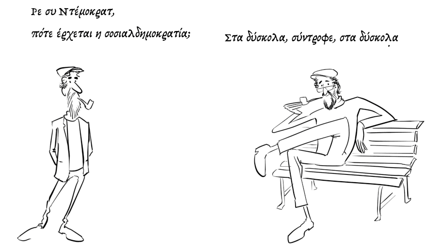 Παραλήπτες του 1ου newsletter είστε όσοι έχετε ήδη συμπληρώσει τη φόρμα εγγραφής ‘’εδώ’’, όσοι μου στείλατε μήνυμα, όσοι έχω -κατά καιρούς- επικοινωνήσει πολιτικά και όσοι εκτιμώ ότι θα το βρείτε ενδιαφέρον. Αν δεν σας αρέσει, ο σόσιαλ ο Ντέμοκρατ δεν θα παρεξηγηθεί με την απεγγραφή σας ‘’εδώ’’ -όμως επειδή είναι πεισματάρης κάποια στιγμή θα σας βρει να σας ξαναπείσει ότι η ενασχόληση με την πολιτική αξίζει. Αν σας αρέσει, προωθήστε το σε αυτούς που θεωρείτε ότι θα το εκτιμήσουν· δεν κοστίζει κάτι, βοηθάει όμως να παραμείνει αναμμένη η πίπα του Ντέμοκρατ. Αν βρίσκετε κείμενα που θέλετε να γίνουν κοινά αναγνώσματα ή θέλετε να μοιραστείτε τις σκέψεις σας, ο Ντέμοκρατ είναι γνωστός ξενύχτης και θα χαρεί να τα διαβάζει τα βράδια πριν λαγοκοιμηθεί.